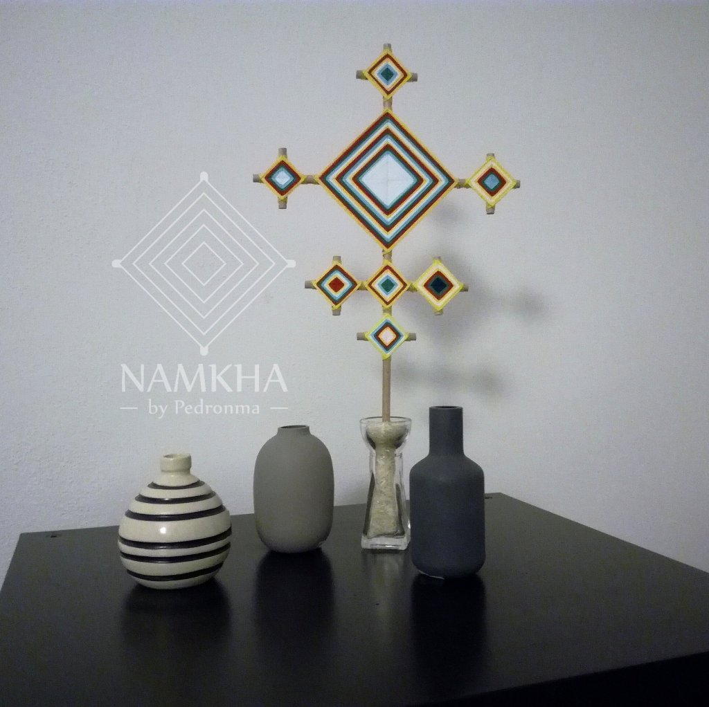 - Where to put it: Choose an unused, clean support for your namkha, like a vase filled with rice grains. Change the rice once in a while if dusty.