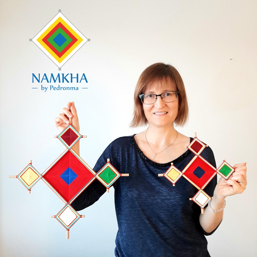 Harmonizing namkha of the birth year is calculated based on Tibetan Astrology (of the Kalachakra Tantra) and constructed to form a pattern that represents a harmonized energy system of the individual, otherwise out of balance. The finished construction is blessed through a sacred ritual to invite the sacred energies to reside within it and connect with its owner. Only then it becomes alive and functional. The power of the namkha then acts on the individual’s energies to balance, heal and protect. It also protects from unfavourable astrological influences, such as those of the current year, that could negatively affect one’s energy pattern.